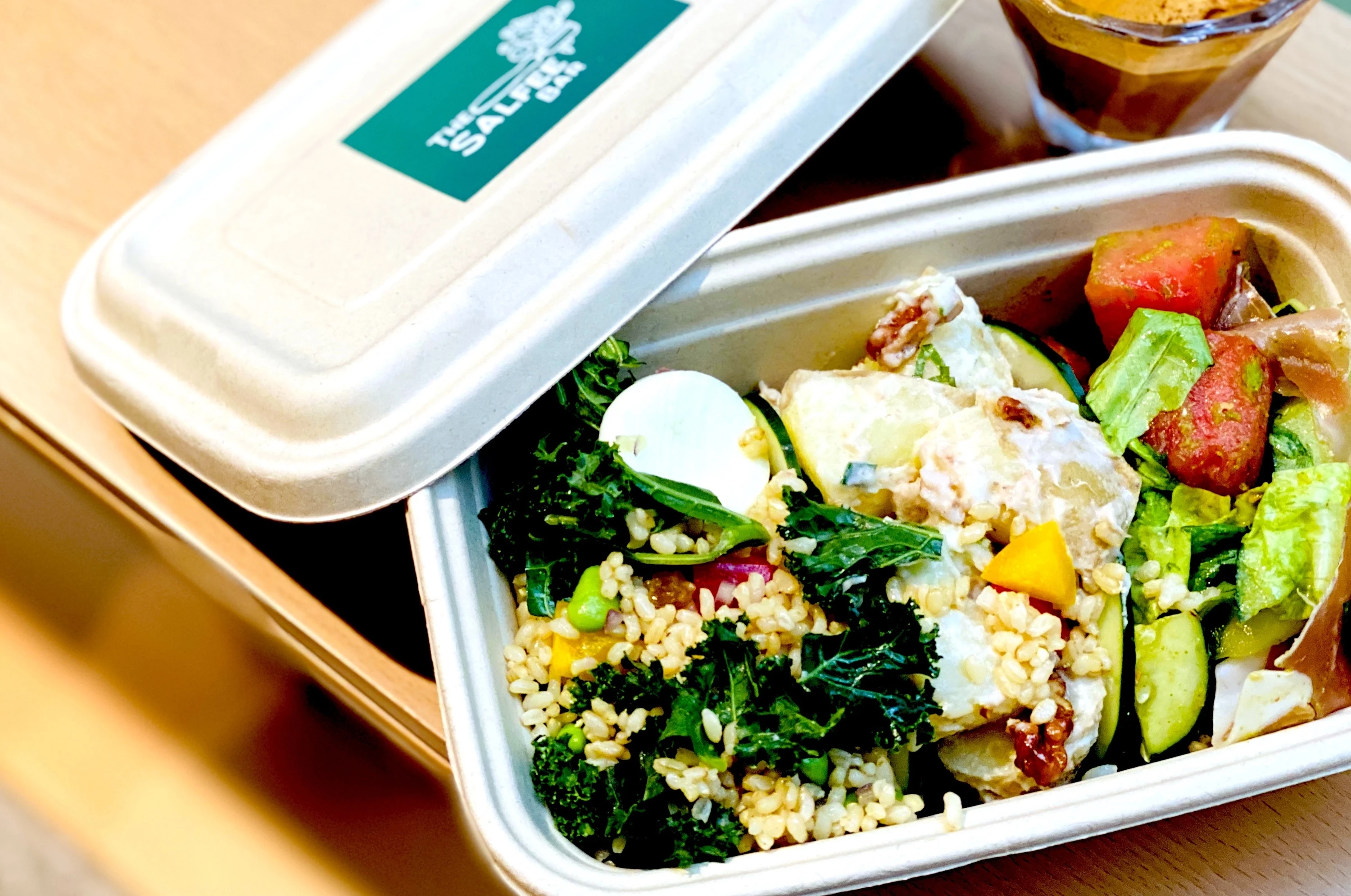 The Salfee Bar 位於尖沙咀中間道全新一站式日式精品生活雜貨店谷辰(Guu San)入面,開放式廚房佈局,大片落地玻璃窗,光猛開揚。咖啡店結合 salad bar 和 coffee shop 概念,主打營養沙律,由兩位法國藍帶廚師炮製,每日提供九款選擇,如越式羽衣甘籃糙米沙律、和風蕎麥麵沙律、松露香草醬車輪粉沙律等,用料新鮮,創意配搭有驚喜。推介南美西瓜生菜沙律,材料有巴馬火腿、西瓜、牛油生菜、青瓜、杏仁、墨西哥辣椒青檸汁,無麩質飲食之選;椰香咖喱甘筍蝦仁沙律則有蝦仁、胡蘿蔔、蜜糖花生、天貝、粟米、菠蘿、葱、芫荽,混入自家秘製椰汁咖喱醬,味道豐富惹味。於新開張優惠期內,所有沙律可獲免費升級,$68兩款口味,$78三款口味。想飽肚一點,可試試四款特色捲餅($38-$52),全部即叫即做。